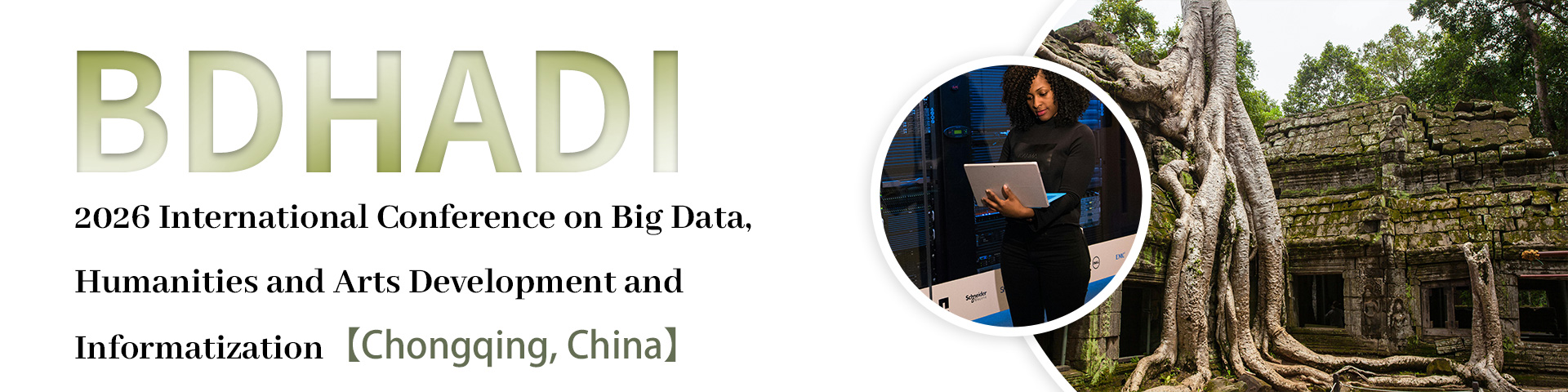 The 2026 International Conference on Big Data, Humanities and Arts Development and Informatization (BDHADI 2026) will be grandly held in Chongqing, China. This international conference aims to provide a high-level and open academic exchange platform for experts, scholars, researchers, cultural workers, educators, and policymakers from around the world who are engaged in big data analysis, humanities and arts research, cultural communication, digital media, informatization development, and related interdisciplinary fields. The conference will delve into in-depth discussions on hot topics such as the application of big data technology in the field of humanities and arts, digital cultural inheritance, the development of smart cultural tourism, digital publishing and dissemination, virtual reality and artistic creation, aiming to promote the deep integration of big data and information technology with humanities and arts, and facilitate the implementation of cultural digitization strategies and the construction of smart cultural environments. BDHADI 2026 will bring together academic elites and industry experts from around the world to jointly explore the new trends of humanities and arts and information technology development in the era of big data, and to promote international scientific research cooperation and cultural exchanges. Conference Highlights Sharing of cutting-edge research The conference will focus on showcasing the latest research achievements in the field of the integration of big data, humanities and arts, and informatization, covering hot topics such as cultural big data analysis, digital cultural heritage protection, virtual reality and art design, intelligent media and communication, digital library and museum construction, human-computer interaction, and artistic experience. Combining theory with practice Through various forms such as keynote reports, paper exchanges, case discussions, and technology demonstrations, we aim to promote the deep integration of academic research and practical applications, and facilitate the innovative application and promotion of big data and information technology in fields such as culture and art, educational communication, tourism, cultural creativity, and more. Interdisciplinary integration platform BDHADI 2026 is committed to building a multidisciplinary and integrated exchange platform, attracting experts and scholars from various fields such as literature, history, art and design, communication studies, computer science, data science, sociology, etc., to jointly explore new paths for the development of humanities and arts in the era of big data. Policy and Industry Trend Dialogue The conference will invite representatives from cultural institutions, digital publishing enterprises, and new media platforms to participate in in-depth exchanges and dialogues on hot topics such as cultural digitization policies, trends in smart cultural tourism development, and norms for digital art creation. BDHADI 2026 will be a high-level and high-impact international event in the field of the integrated development of big data and humanities and arts, bringing together global wisdom to jointly plan for a new future of cultural digitization and informatization development. We sincerely welcome experts, scholars, researchers, and industry professionals from all over the world to actively participate in this event, and to join hands in promoting the deep integration and innovative development of humanities and arts with informatization in the era of big data, in the beautiful city of Chongqing, China!